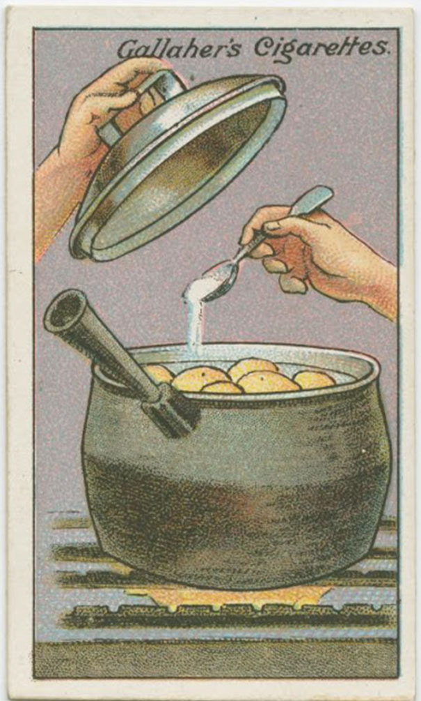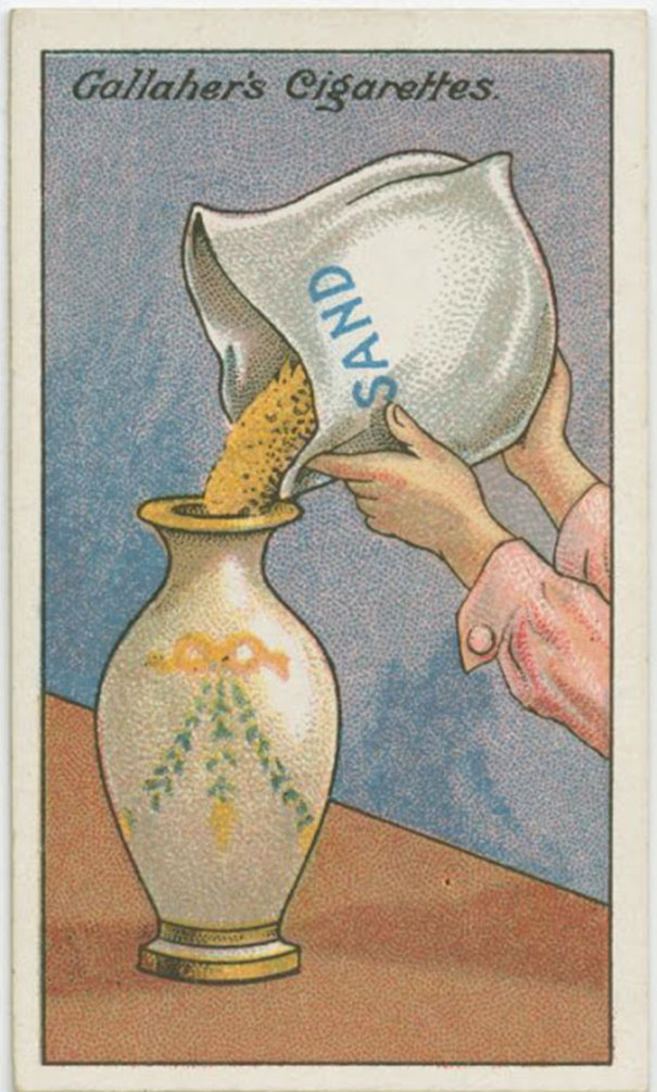 Belegondolni is hihetetlen, de az alábbi házi praktikákat rejtő kártyákat még az 1900-as évek elején, több mint 100 évvel ezelőtt bocsájtotta piacra a brit Gallaher cigarettagyár, akik ilyen- és ezekhez hasonló kreatív trükkökkel és ötletekkel árulták akkoriban a dohánytermékeiket, hogy még inkább ösztönözzék az embereket a cigarettavásárlásra.