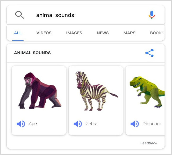 12. ,,Ma véletlenül rájöttem a Google egyik titkos funkciójára, amivel meghallgathatjuk, hogy melyik állat milyen hangot ad ki.”