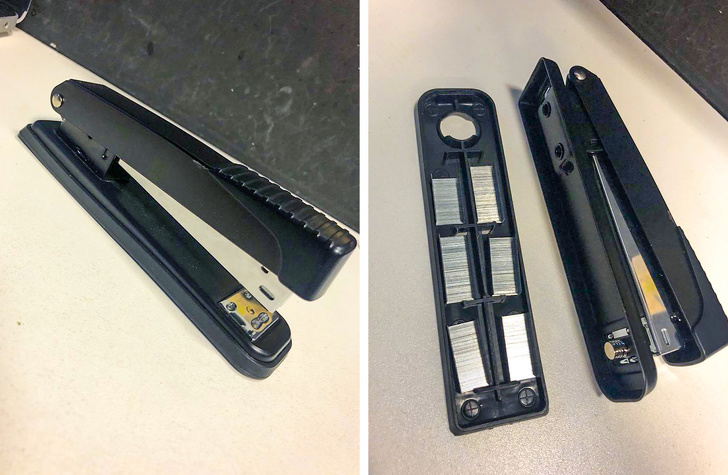 16. ,,Rájöttem, hogy a tűzőgépnek van egy speciális rekesz az alján, ahol a betéteket tárolhatjuk.”