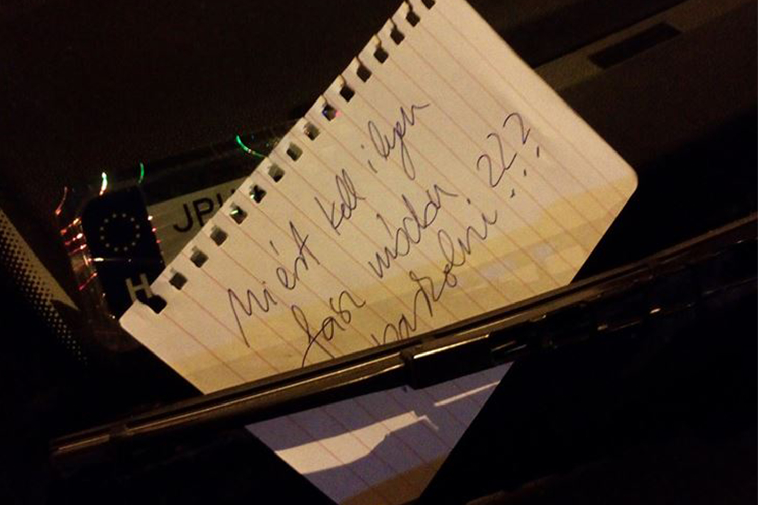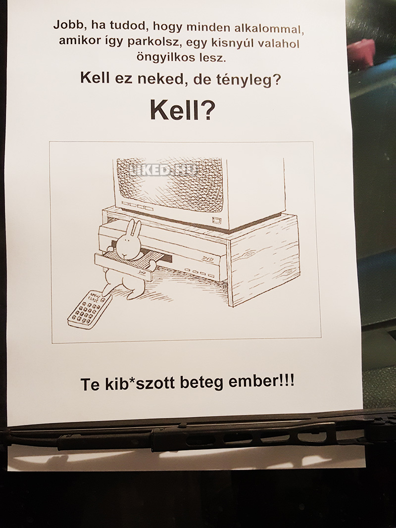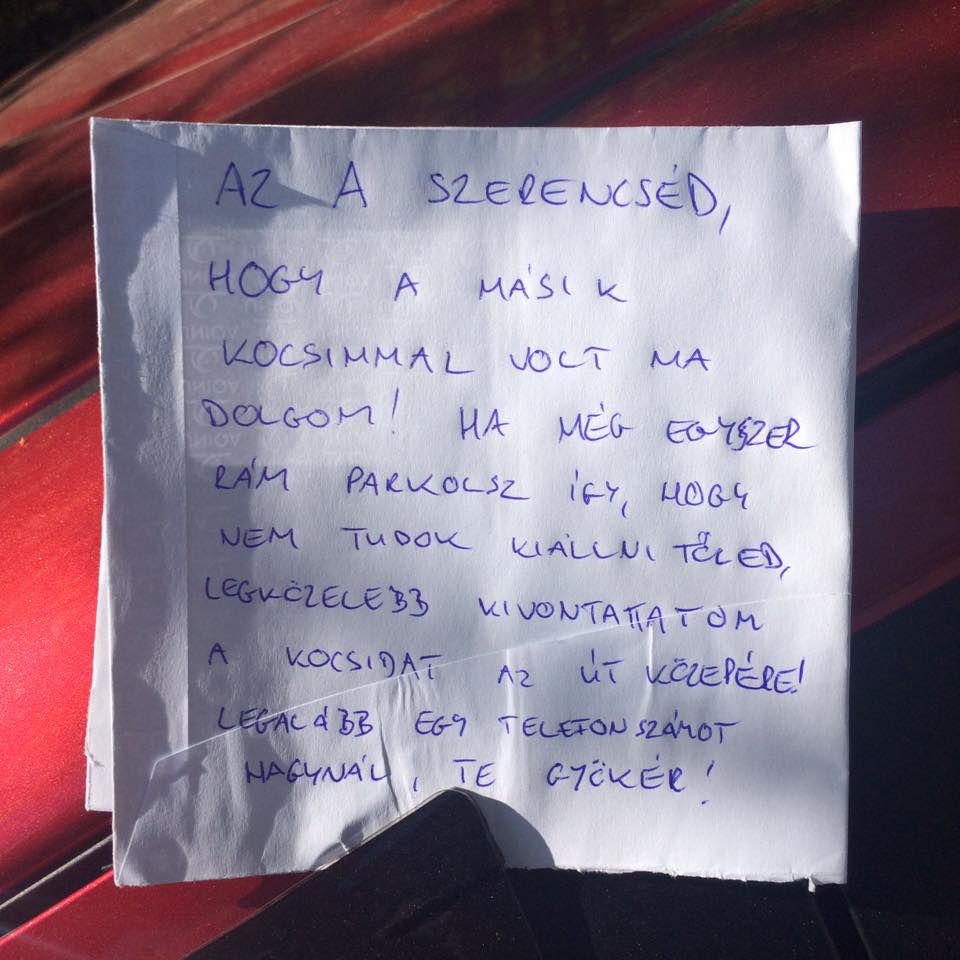 1. Emberünknek szemlátomást sok ideje volt, hiszen nemcsak úgy firkantott egy cetlit, hanem jól megfontolt támadást indított a kiállását akadályozó sofőr ellen… 😀