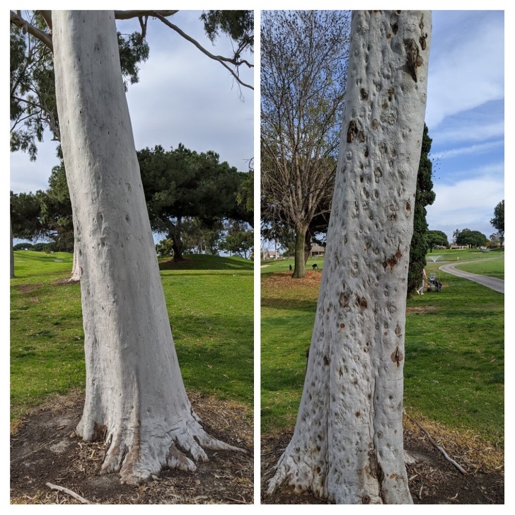 15. Egy golfpályán található eukaliptuszfa két oldala.