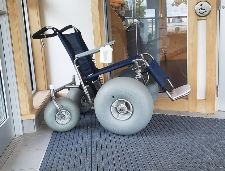 14. Ez egy kerekesszék, amit homokos tengerpartokra terveztek.
