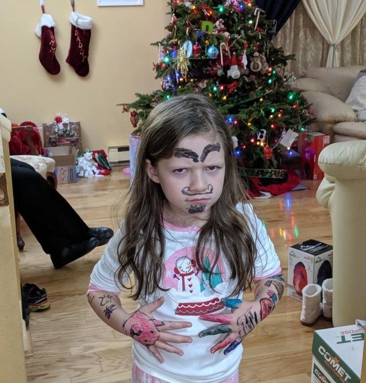 12. ,,A 6 éves lányom filctollakat kapott karácsonyra, majd fél órára eltűnt. Most nem tudjuk lemosni.”