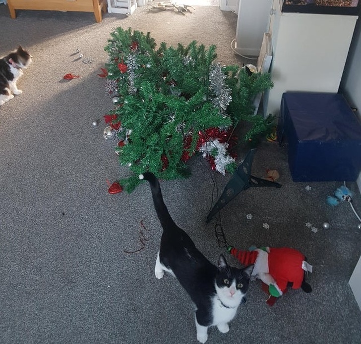 24. ,,Ma este elvesztettem egy fogadást. A feleségemmel fogadtunk, meddig fog állni a fa. Én azt hittem, hogy kibírja a másnap reggelt, de a macskák már este 7-re elintézték.”