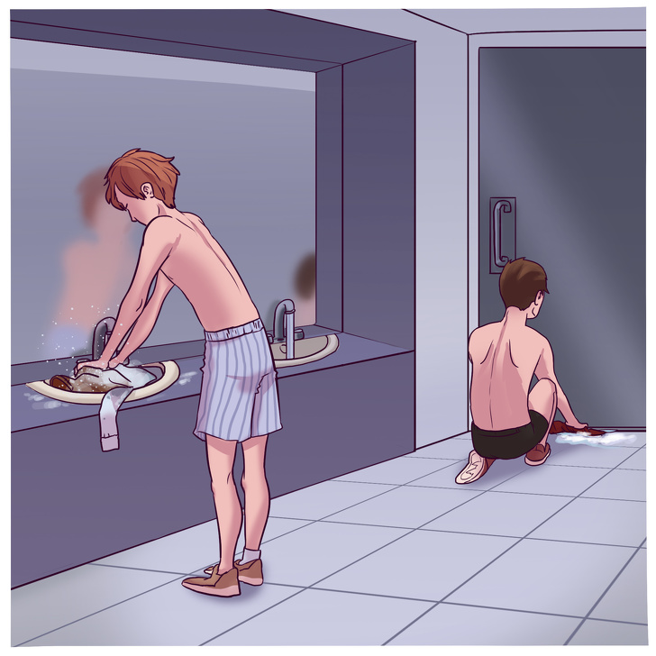 Ezután nyissuk meg a csapokat és nedvesítsük meg az összes ruhánkat, illetve minden létező dolgot és takarjuk el velük a réseket, ahonnan esetleg füst szűrődhet be a mellékhelységbe. A ruhadarabokat folyamatosan nedvesítsük, és várjuk meg a tűzoltók kiérkezését.