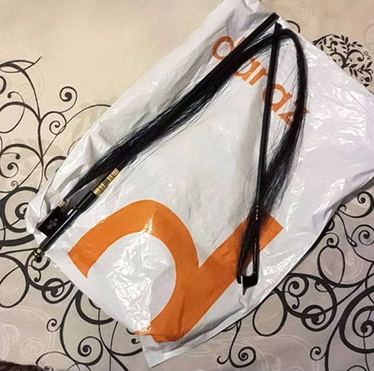 7. Ez az internetes áruház a helytakarékosság kedvéért félbetörve küldte a hegedűvonót. Milyen kedves gesztus.