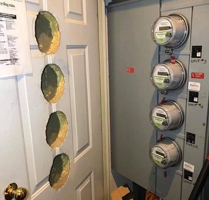 6. A munkás egyszerűen kivágott egy kicsit az ajtóból, hogy rendesen be lehessen csukni. Vell dán!