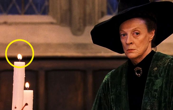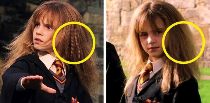 7. A jelenetben, amikor a gyerekek megtanulják kezelni a seprűt, Hermione haja rejtélyesen kiegyenesedik.