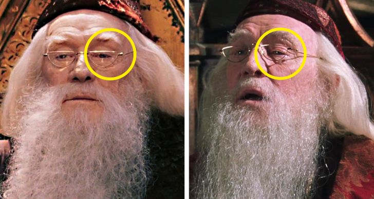 11. A sorozat második részében Dumbledore szemüvegéből kivették a lencséket, hogy ne tükröződjön rajtuk a kamera.