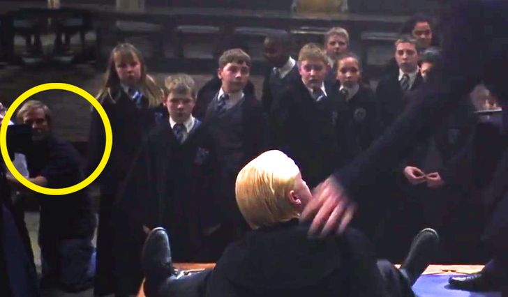 14. Harry és Malfoy harca közben egy operatőr tűnik fel a diákok között.