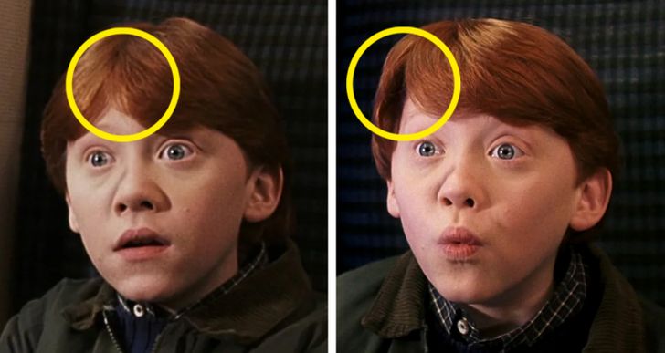 5. Ron frizurája jelenetről-jelenetre változik, amikor találkozik Potterrel a Roxfort Expresszen.