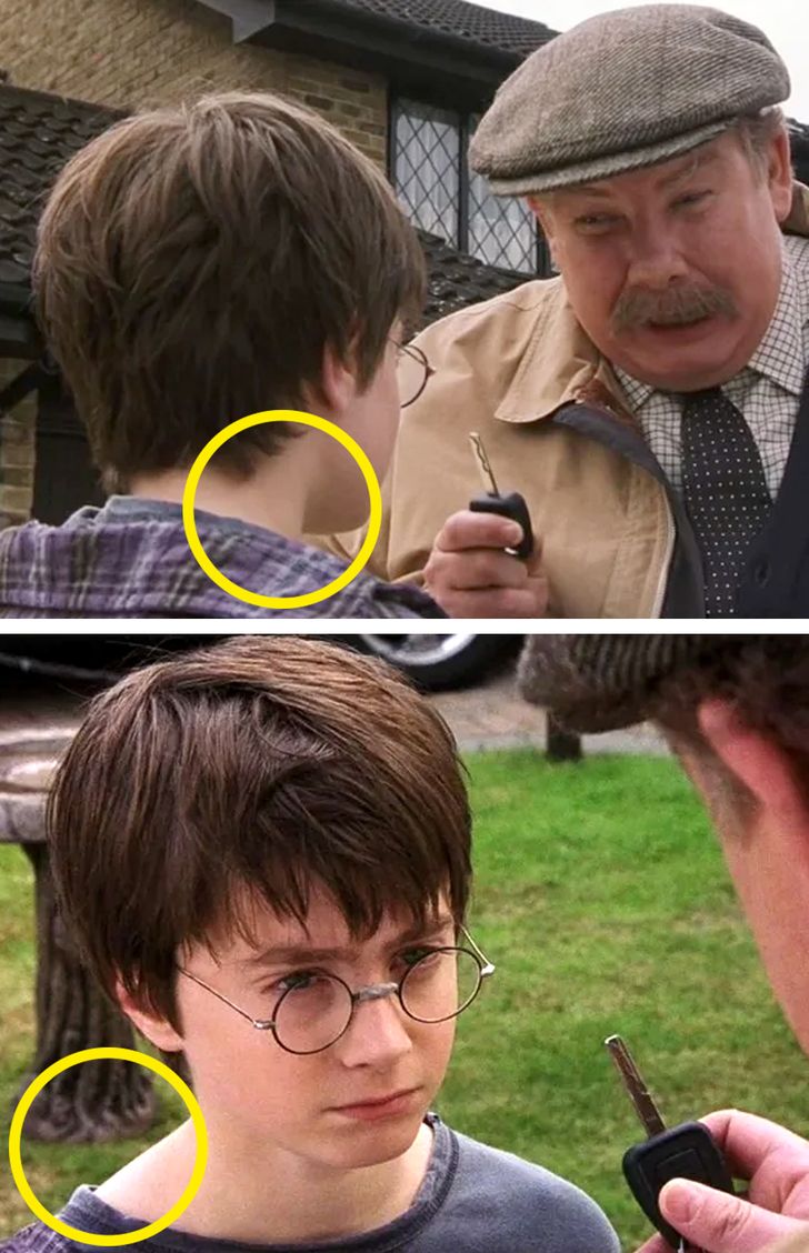 16. Amikor Harry az ágyon fekszik és rémálma van, először kereknyakú pólót visel, majd amikor felébred, már gombos nyakú van rajta.
