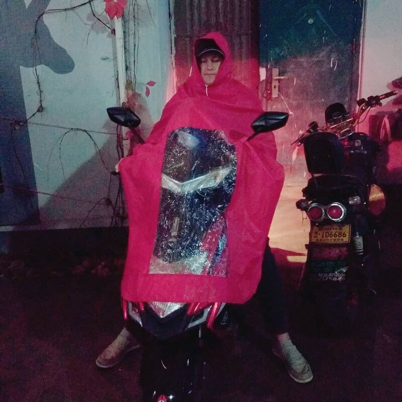 - esős időben is robogóval jársz, de speciális köpenyt viselsz.