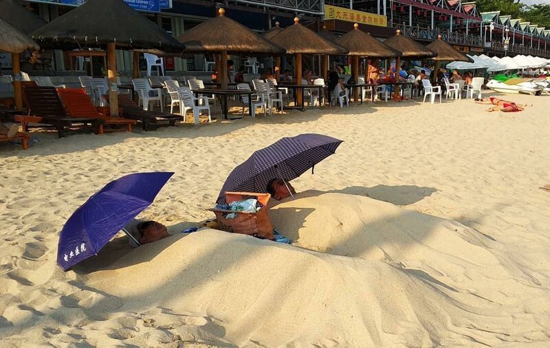 12. Nyugalom, csak kínai emberek pihennek a tengerparton.