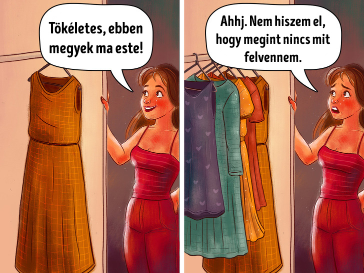 - Döntési paralízis. Amikor kinyitjuk a hűtőszekrényt, és azt mondjuk: „nincs mit enni” – pedig tele van. Amikor átnézzük a több száz filmből álló gyűjteményünk és azt mondjuk: „nincs mit nézni”. Nem tudom, hányszor rendeltem ugyanazt az ételt az étteremben, csak mert a többi étel olyan finomnak tűnt, hogy nem tudtam közöttük dönteni. © Wasnbo