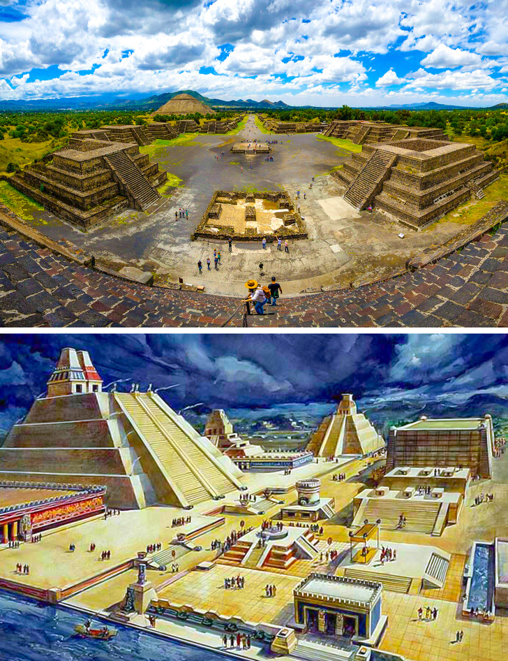 Teotihuacan egy jól átgondolt terv szerint épült: ennek bizonyítéka, hogy az utcahálózat egyenes szögben metszik a központi sugárutat.