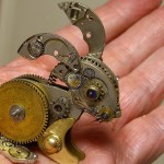 Régi óra alkatrészekből készített egyedi Steampunk szobrokat