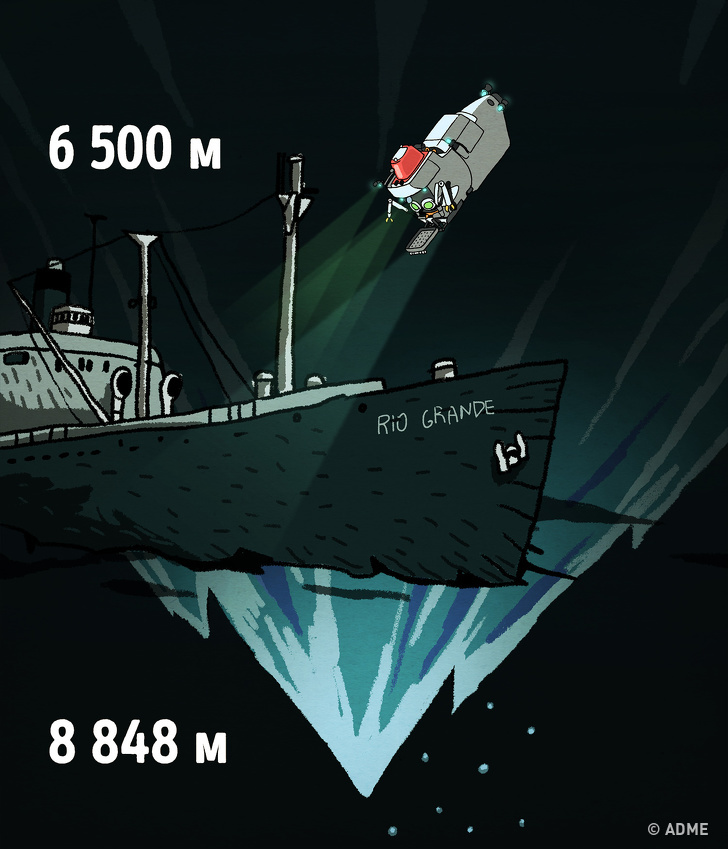 6762 méter: itt fekszik az SS Rio Grande – a második világháborúban elsüllyesztett német blokádtörő hajó, amit az amerikai tengerészet süllyesztett el Brazília közelében, 1944-ben.