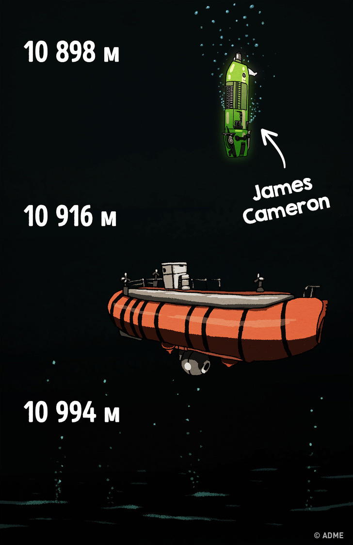 10.898 méter: ez az a mélység, ahová 2012-ben a világhírű rendező James Cameron eljutott a „James Cameron’s Deepsea Challenge 3D” című dokumentumfilm forgatása közben a Mariana-árokban. 3 óráig tartott, míg eljutottak ebbe a mélységbe. Ha érdekel James élménybeszámolója, azt ITT olvashatjátok el magyar nyelven.