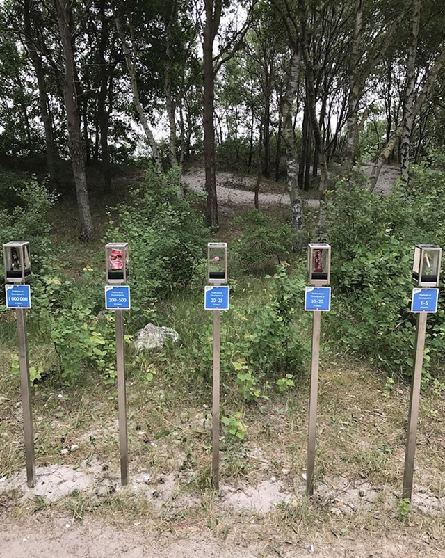24. Ezen a tengerparton tájékoztató jellegű oszlopok láthatók a leggyakoribb hulladékokkal, amiket az emberek eldobálnak a strandon. Az oszlopokon az is látható, hogy mennyi időbe telik, amíg az adott szemét elbomlik.